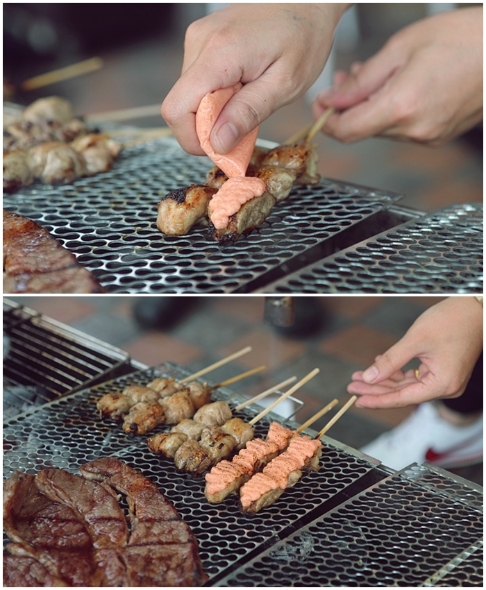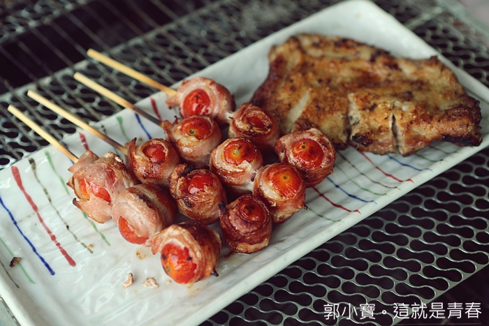大部分的食材都幫客人處理乾淨且都分類的串好真的很貼心,喜歡什麼直接拿起一串下火爐烤,不用每個人都在搶夾子,直接翻轉木棒翻面烤超均勻的,幾乎每一種烤的都剛剛好,番茄培根捲超受女生歡迎的,幾乎每一種肉品的品質都非常好。