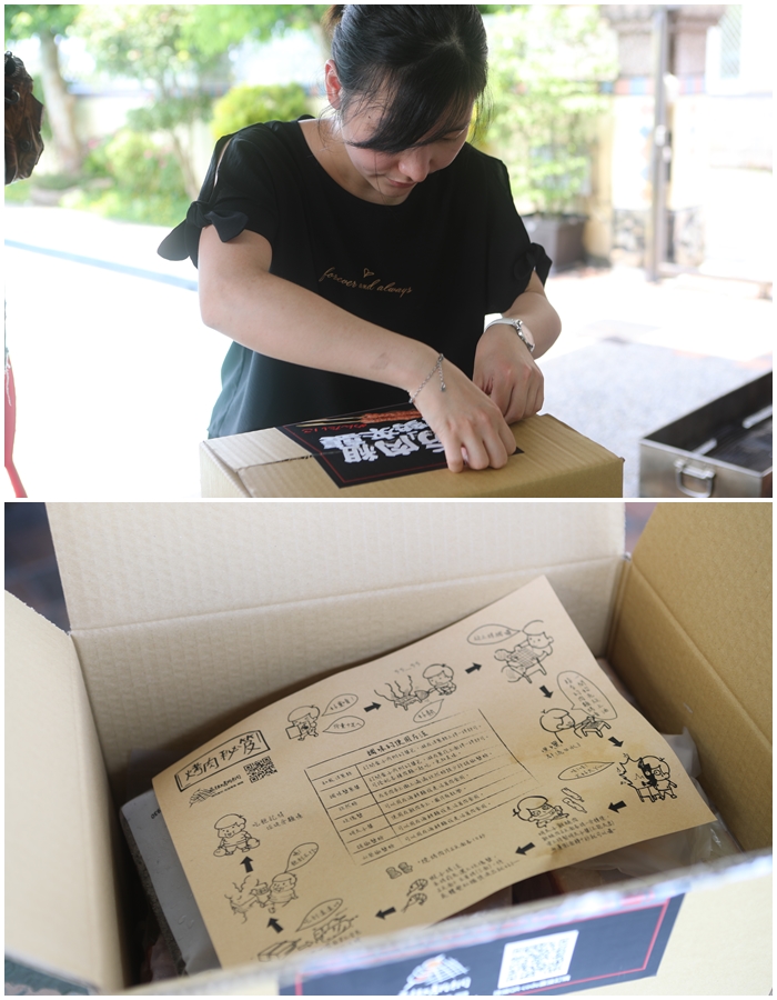 打開兩個箱子都裝得滿滿的,裡面還有一張宣傳單,剛好可以對一下訂的價位跟裡面的內容物有沒有相符,還有另外附上一張烤肉秘笈,手繪烤肉秘笈還滿可愛的,裡面有提醒幾個比較需要注意的食材。 |