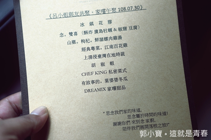 這天的午餐只有我們訂位,念家廚是在7月中才開始正式營業,知道的人並不多,很多都是念家廚本身在香港的老客人,很多香港人來台灣玩也會特別訂念家廚來品嘗老朋友的味道。 |