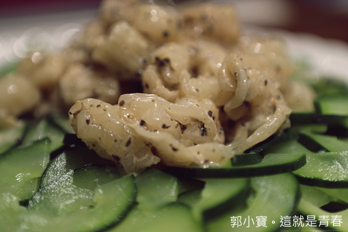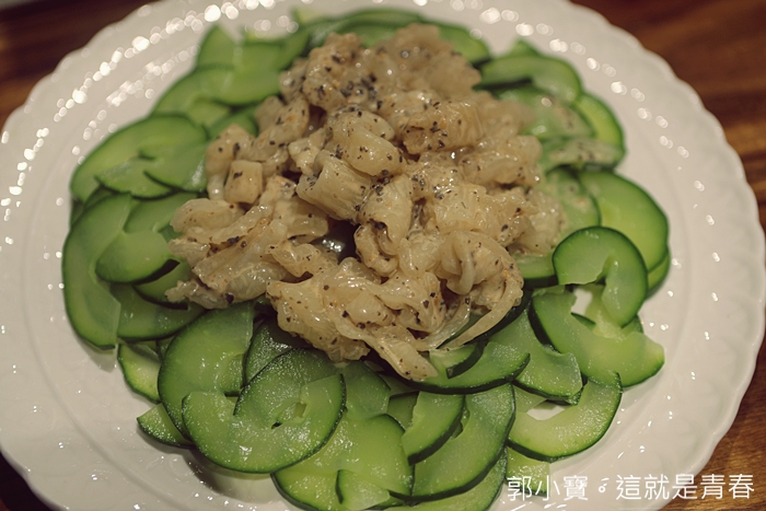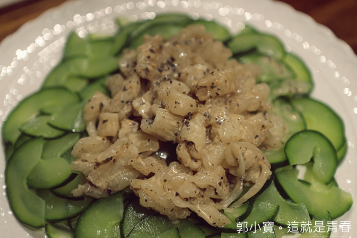 一出手就是要假不斐的花膠,尤其這幾年來花膠的價位就像電梯一樣的速度往上飆升,沒有過多的調味,冰鎮過的花膠口感跟以前吃到的都不一樣,就連下面的小黃瓜都滿順口的。 |