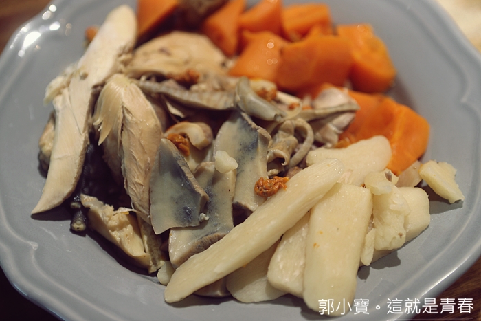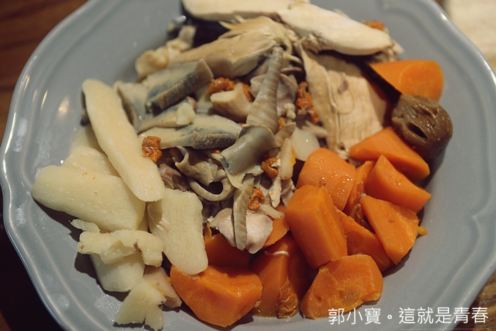 雞湯喝起來略為清淡,稠度看起來很濃郁,但是入口頗為爽口溫潤,跟我想像中的雞湯也不太一樣。 |