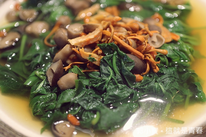 上湯搭配的是地瓜葉,這一道我也覺得清淡,吃到這邊我其實覺得念家廚跟我以前在香港、澳門及台灣吃的很多廣東菜餐廳不同之處在於這邊的口味還滿清淡的。 |