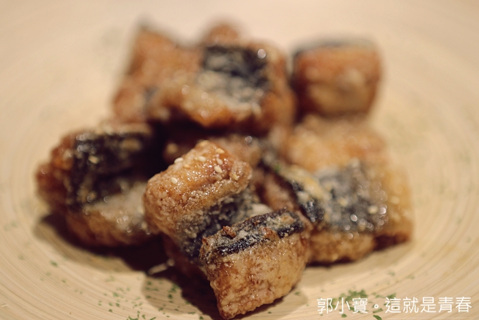 酥炸鰻魚非常好吃,尤其鰻魚皮咀嚼起來非常有嚼勁,外面薄博糖霜緊緊巴著鰻魚肉,帶點些微的糖衣脆度,這一道菜是當天太妃最滿意的一道菜。 |
