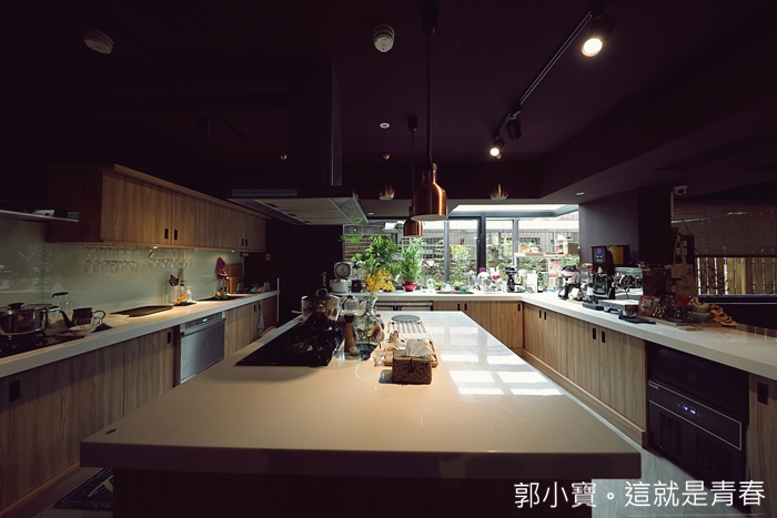 後方超大的開放式廚房空間也非常的美,窗戶外面還有植栽,打掃得非常乾淨,烹煮時的香味會飄散滿屋,讓人整個食慾大開。 |