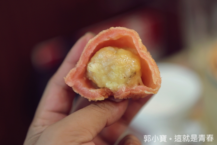 讓我頗為意外的一到點心,之前在其它家港式點心都沒有吃過,意外的大受好評,外皮炸個剛剛好,搭配內餡是豬肉跟芝士非常揪C,豬肉餡沒有豬腥味肉汁又甜,推薦! |