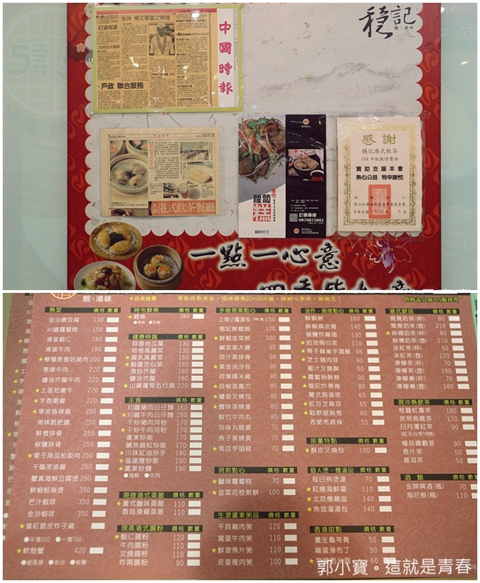 穩記的菜色非常的多,除了點心以外當然還有許多港式料理,看了一下價位真的很平價,跟其他的港點或是北部的港點比起來真的太划算了啦! |