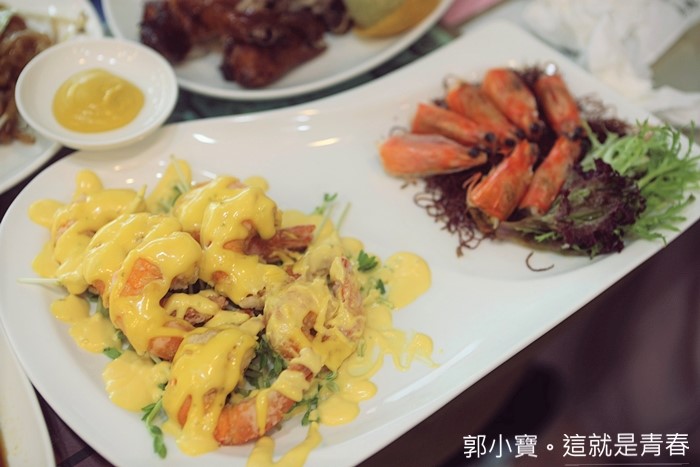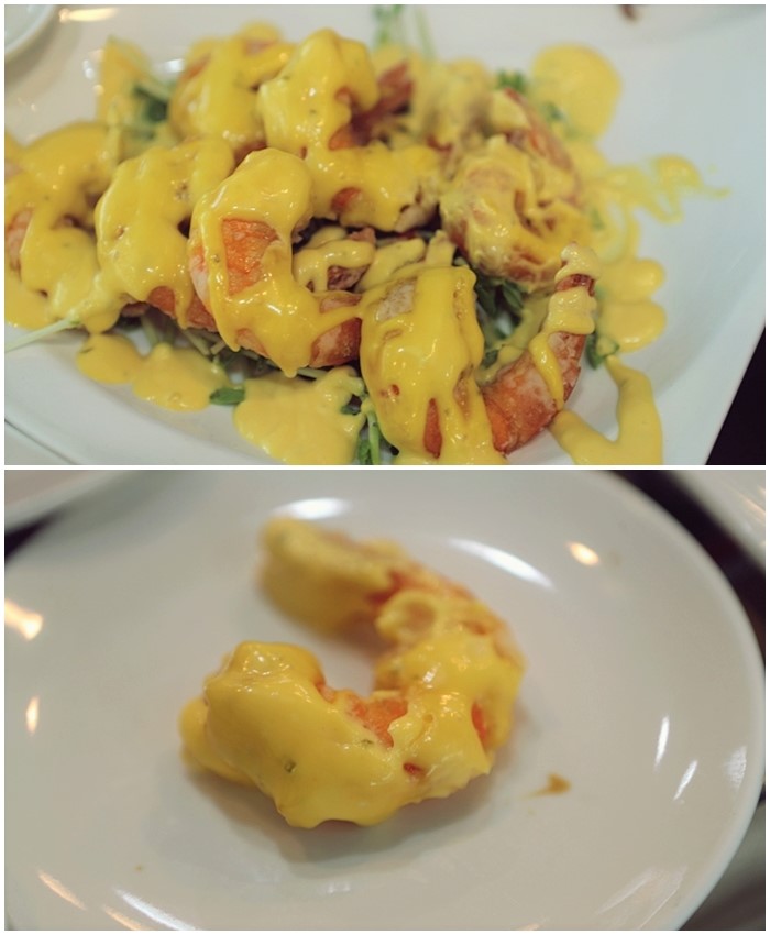 一份350的芒汁蝦球給的份量比起很多餐廳多出很多,蝦子的尺寸也都有一定的大小,芒汁的部分帶點酸甜滋味更開胃,多吃幾隻下來也不會覺得膩口。 |