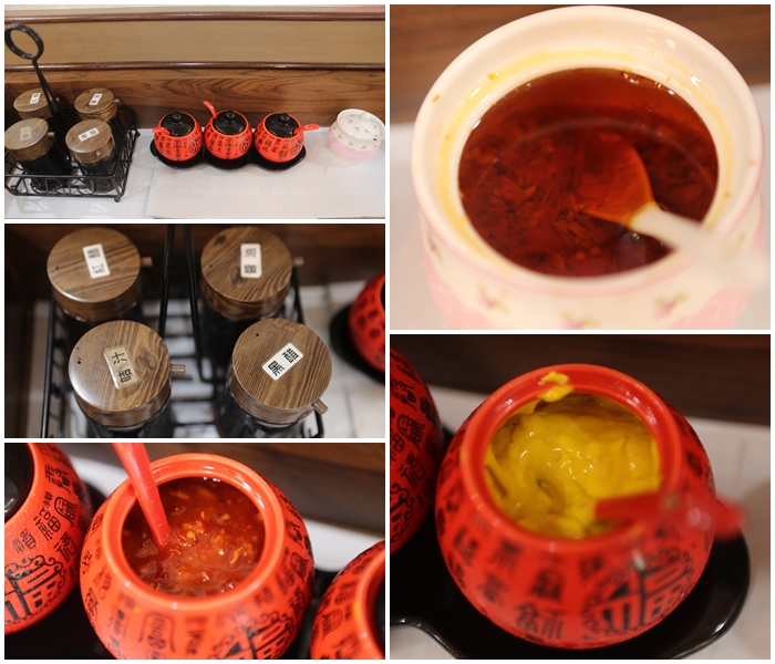 調味料的部分則是統一放在醬料桌,它們家的辣椒醬非常有名,辣油非常的香,還有我超愛的黃芥末醬也有供應。 |