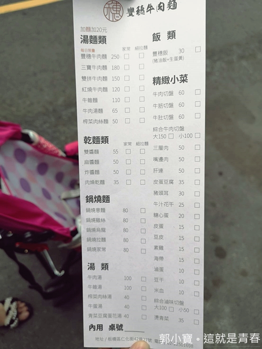 豐穗牛肉麵 地址:新北市板橋區仁化街42巷27號