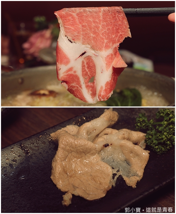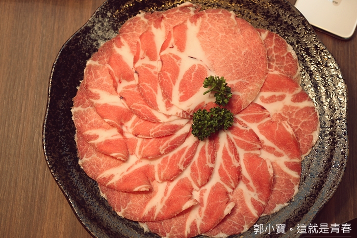 肉品除了牛豬以外還有小羔羊跟櫻桃鴨,但是我個人還滿喜歡豬梅花的,豬梅花的品質落差通常也很大,但是銅花的豬梅花確實品質很好份量也夠多,入口的豬梅花的油脂恰到好處,咀嚼中可以吃到瘦肉的咀嚼感。 |