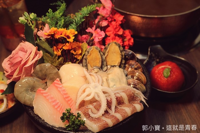 特別的是銅花精緻涮涮鍋的部分海鮮都是堅持使用活體,帝王蟹跟龍蝦都可以看到一旁的水族箱內活跳跳的非常新鮮,這類型的海鮮就是要吃活體才美味!! |