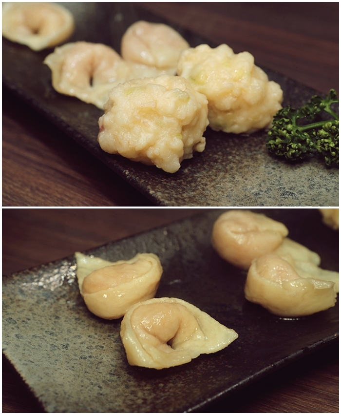 套餐也含有特製的手工餃類拼盤,除了每一口都咬到的花枝的花枝丸以外,魚餃跟燕餃也都很強,尤其是餃皮的部分真的不輸給新竹與基隆老店,爽度破表。 |