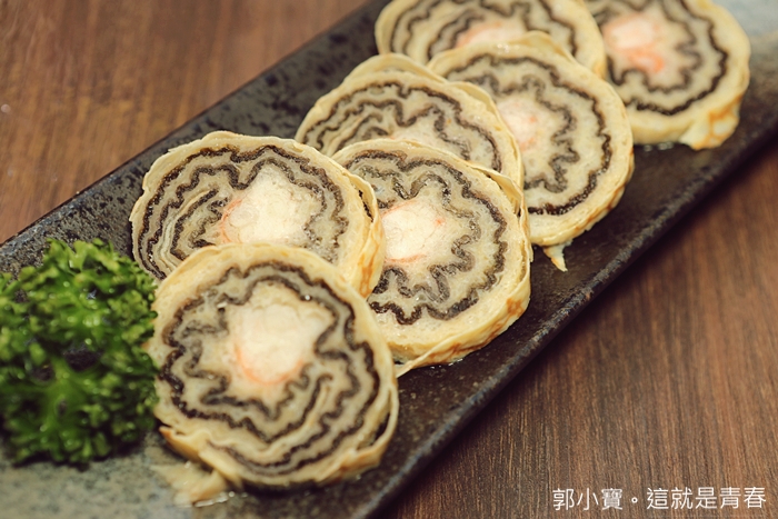 店內人員可能聽到我以前就是高雄店的常客,所以就招待了我們幾款商品,這虎皮蝦捲也是她們家的招牌,蛋皮裹著紫菜還有蝦肉的虎皮蝦捲真的物如其名,吃起來的味蕾層次豐富度非常的高,極推薦的一款火鍋料。 |