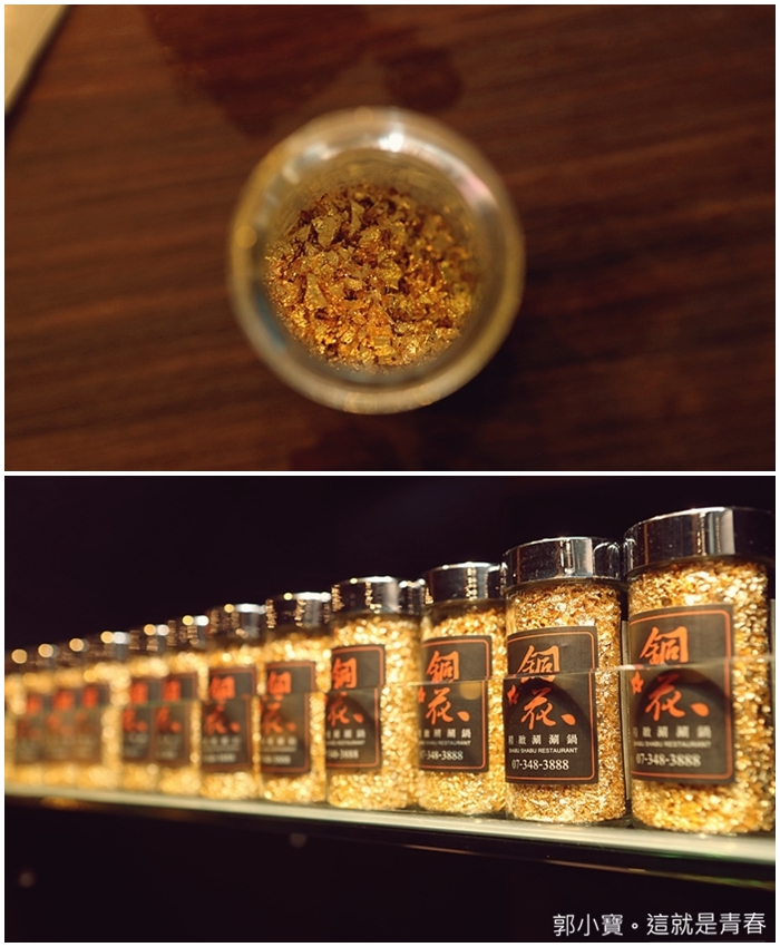 真的一整瓶的金箔灑的滿滿的,櫃台也有販售一整瓶的金箔。 |