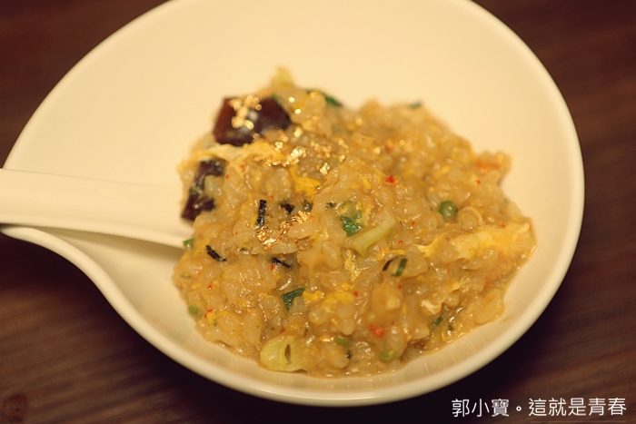 差不多熬煮後工作人員就開始撒上亮金金的東西,仔細一瞧才知道撒上超多金箔,這也太大氣了吧,一點都不手軟的狂撒,這雜炊也太奢華了,這黃金稀飯真的非常濃郁,每一口都是濃濃的海鮮味,我個人比較台式,如果可以再加上一點點胡椒的話那就無敵完美了XD |
