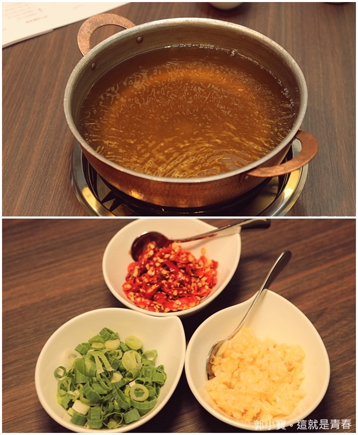 銅花的鍋具都是從日本訂製的銅器,手打銅器在日本算是非常頂級的工藝,加上銅器除了有很好的導熱性以外,很多人其實也不知道其實 銅器有很好的殺菌效果,一上桌的時候店家也都已經被配料準備好放在桌上了。 |
