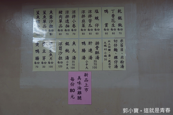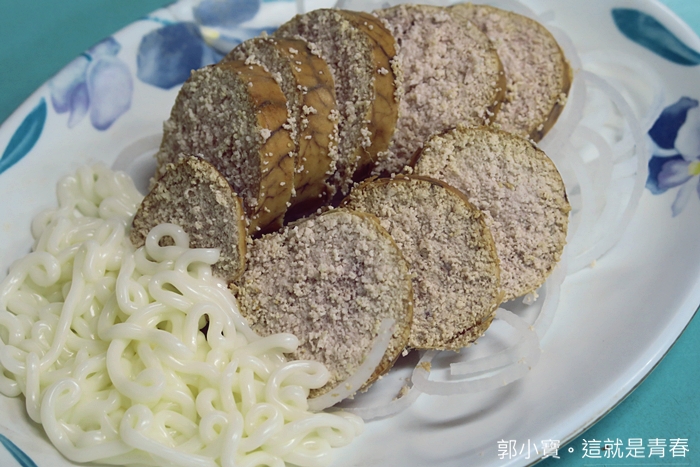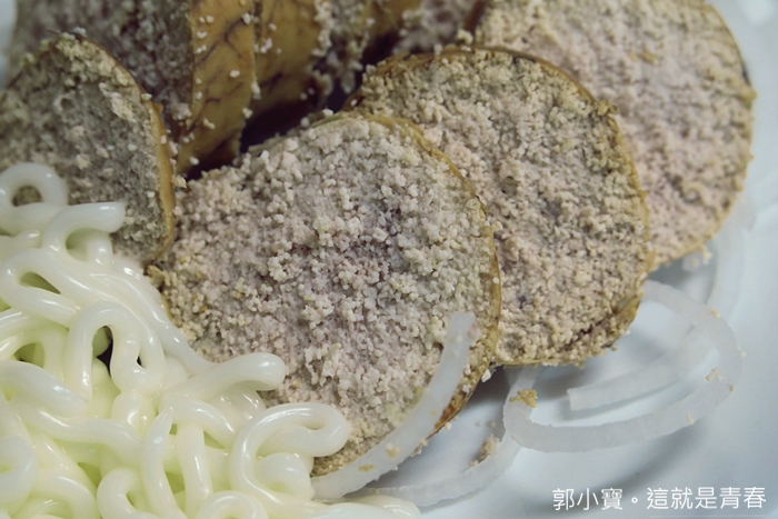 老闆娘很可愛也很親切,她看我是新客人,還跟我介紹了一下她自己是從宜蘭嫁過來的,所以她是宜蘭南方澳人,製作鯊魚烟的方法傳到老闆娘這邊已經是第四代了,從小對鯊魚烟就很有研究,尤其這家的鯊魚烟跟其他食材都不假他人之手,店裡看到的任何食材跟醬料都是老闆娘親自手工製作,除了麵條以外(孫女補上的一句)