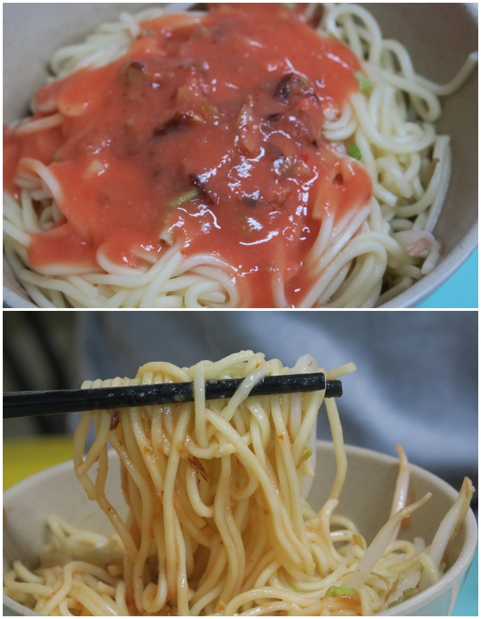 一碗切仔麵只要30圓也真的是佛心價味,淋上這帶點甜味的醬汁,麵條吃起來比較粉一點,這種麵條口感是我爸那年代比較喜歡的,我個人比較喜歡像油麵那種彈牙口感。 |