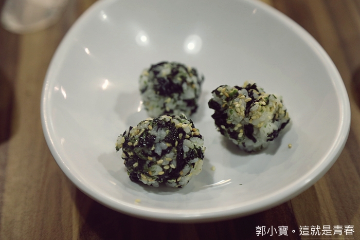 我家嬰皇的飯糰就做好了,白飯吃起來帶點濕潤感,海苔跟白芝麻本來就是白飯的好朋友,吃起來還不錯,但是沒有特別驚艷,在家應該也可以做得出來。 |