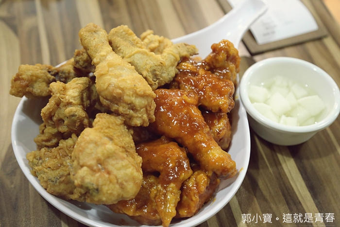 吃了兩三塊後對我來說洋釀我真的沒辦法,太妃覺得他們家的洋釀還好,還是沒有韓國本地的炸雞好吃,且她也不喜歡她外層裹的粉,但相對來說她們家的洋釀本身確實還不錯。 |