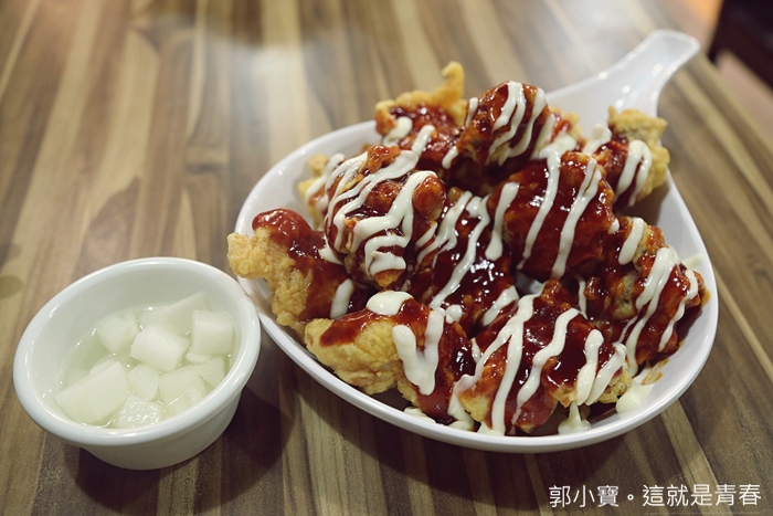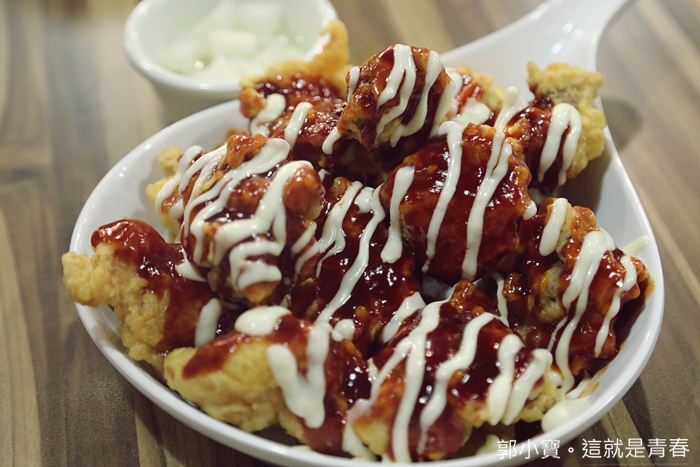 就是韓國的辣醬的滋味,再加上一點美乃滋,真的味道很不錯,辣在前面不會一直吃舌頭,加上剛炸上來熱呼呼一口吃下真的還滿過癮的。 |