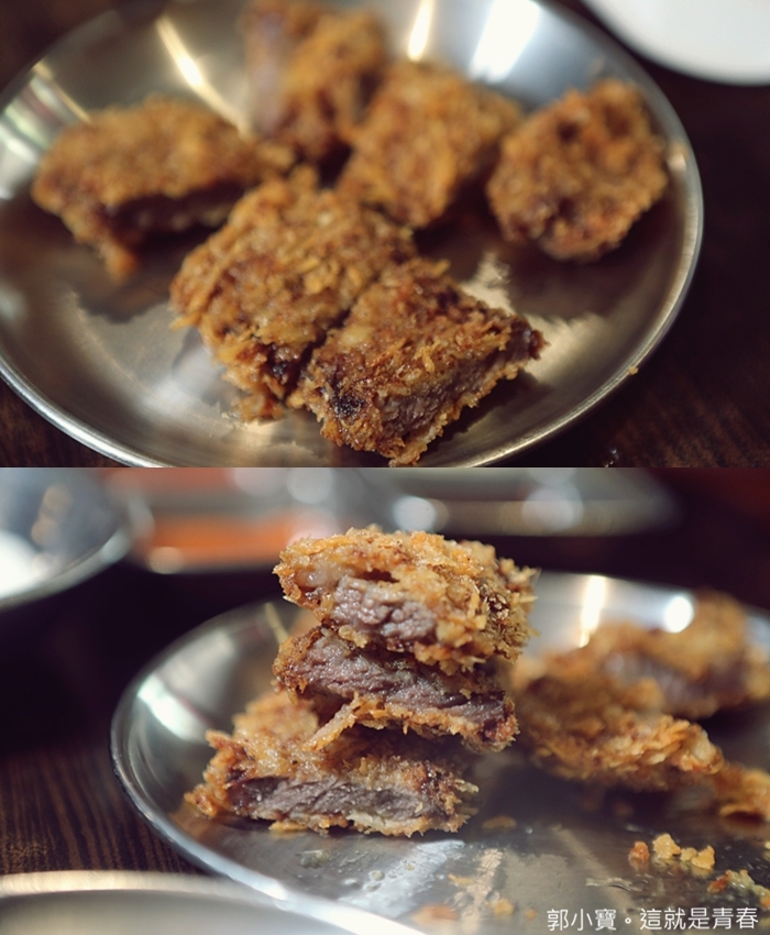 炸牛排不是固定菜單,槿韓食堂每隔一段時間都會有特殊菜單,剛好我們去的這個月是炸牛排,炸牛排我家太妃覺得很好吃,粉皮非常酥脆,牛肉軟嫩口感非常好。 |