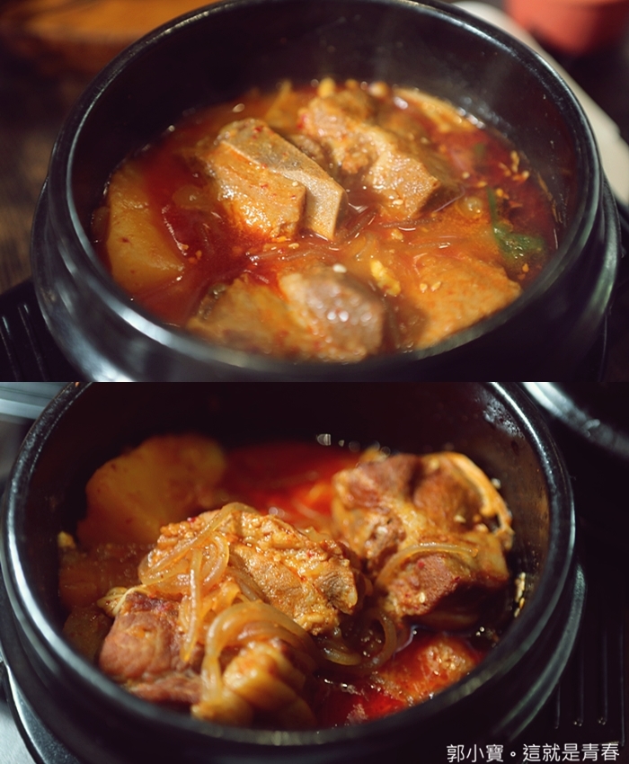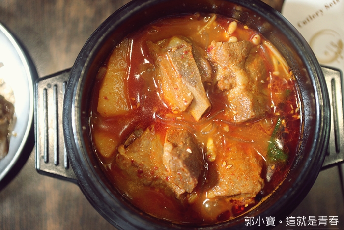馬鈴薯排骨在韓國也是很經典的餐點,很多餐廳都是以馬鈴薯排骨為招牌,但是這邊的馬鈴薯排骨比較合台灣人的口味,韓國的排骨幾乎都沒有甚麼肉,味道雖然不錯,但是對於台灣人來說會有點空虛,因為類似湯品的部分台灣的湯品更加厲害,所以槿韓食堂的馬鈴薯排骨就改良成泡菜口味,挑選肋排骨,每一塊肉都超多的,吃起來非常過癮!!! |