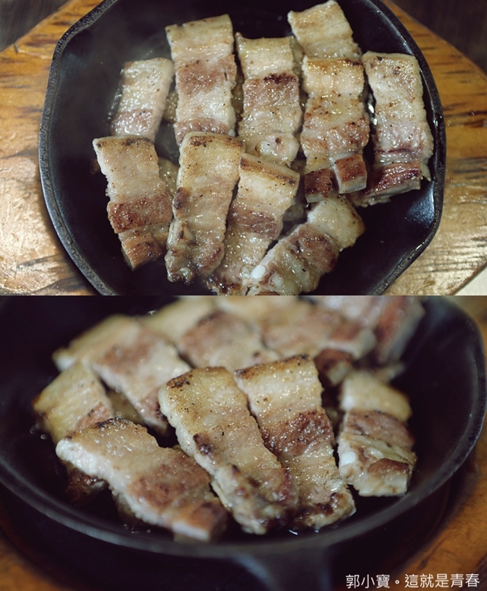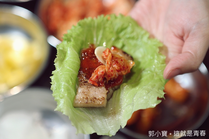 豬五花是幫客人烤好才上桌,槿韓食堂的客人只要負責張口大吃就對了,生菜搭配泡菜還有辣醬在夾五花肉一整個很銷魂,好想在配上真露,一整個讓人想起在韓國旅遊的回憶。 |