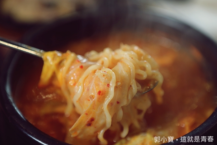 韓國部隊鍋也是每個人提起韓國美食都一定會聯想到的,槿韓食堂的部落鍋比較迷你一點,但是應該有的材料也都會入鍋,少數韓式餐廳可以把它們一系列的湯品煮的味道都是我比較喜歡的,部隊鍋因為裡面有泡麵,所以要趕緊趁熱吃。 |