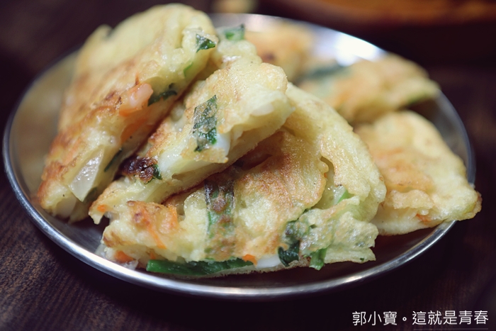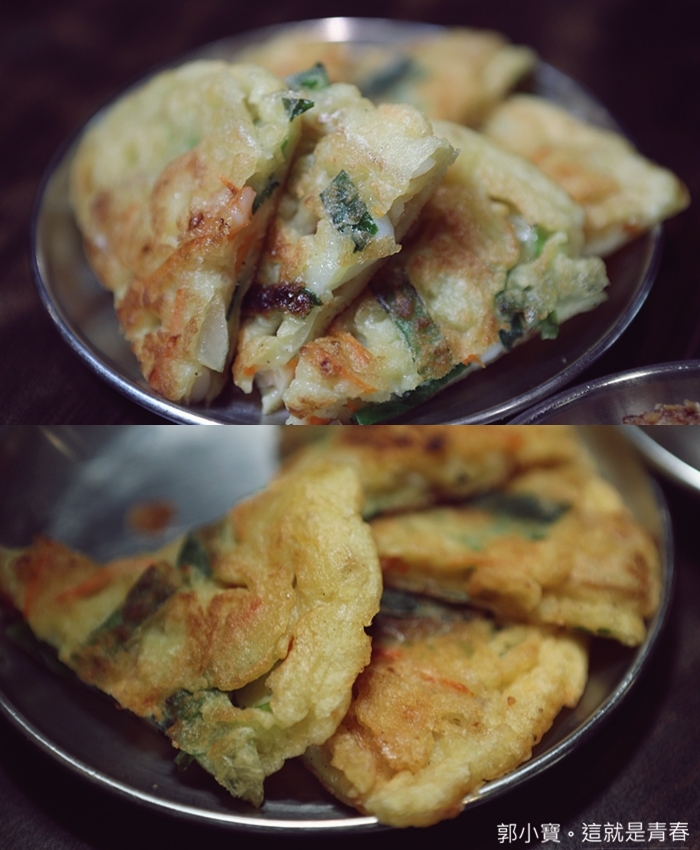 海鮮煎餅厚實口感咬起來很好,裡面的餡料也很紮實,外皮酥脆內餡軟口,整體咀嚼感很豐富唷! |