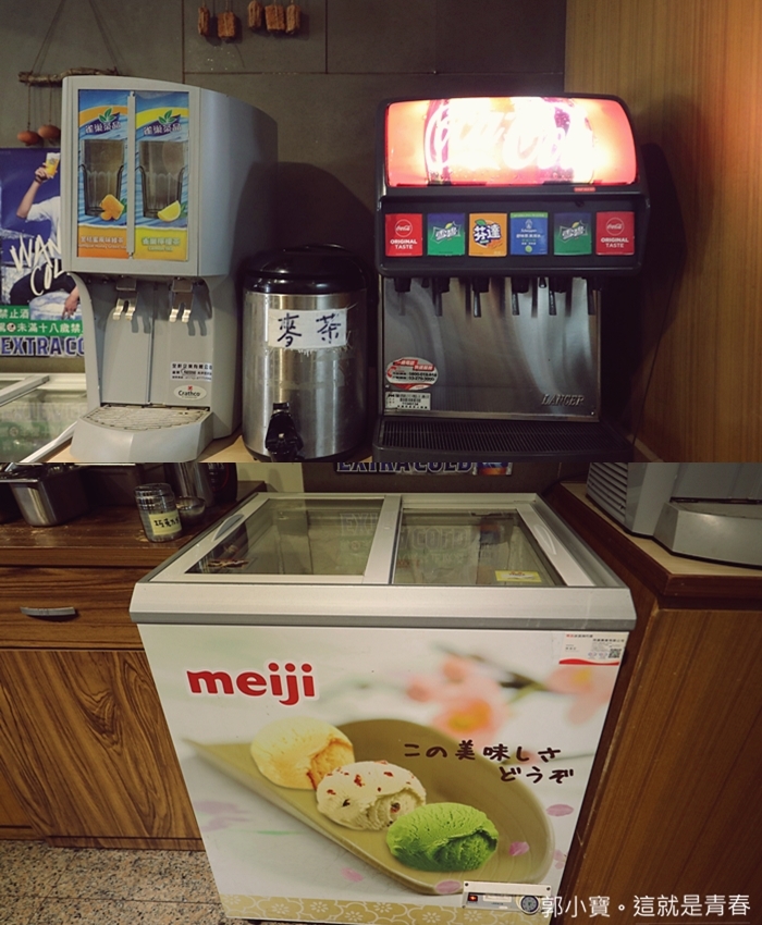 自助區除了提供氣泡飲料以外還有熱麥茶及果飲,重點她還有明治的冰淇淋可以吃到飽。 |