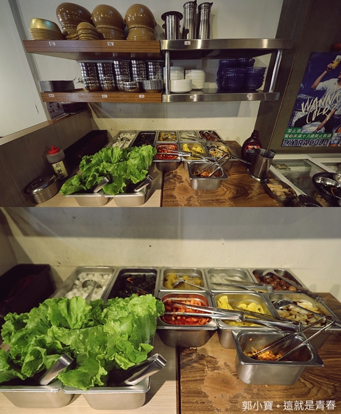 小菜種類非常多,小菜區也是屬於自助式,想吃什麼小菜自己夾,還有生菜也都是無限量供應,餐具也通通都在這邊,重點是它們的餐檯真得隨時都整理得很乾淨。 |