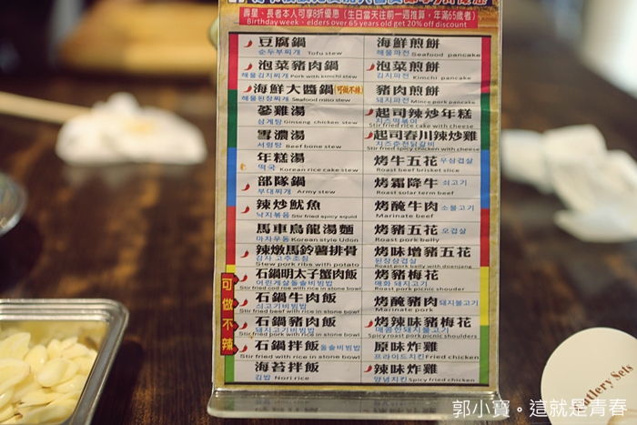 槿韓食堂三十種韓式料理菜色任君選擇,用看的真的會讓人看到眼花撩亂,每一種都會讓人想點來試試看,因為韓國很經典的菜色槿韓食堂都有提供。 |