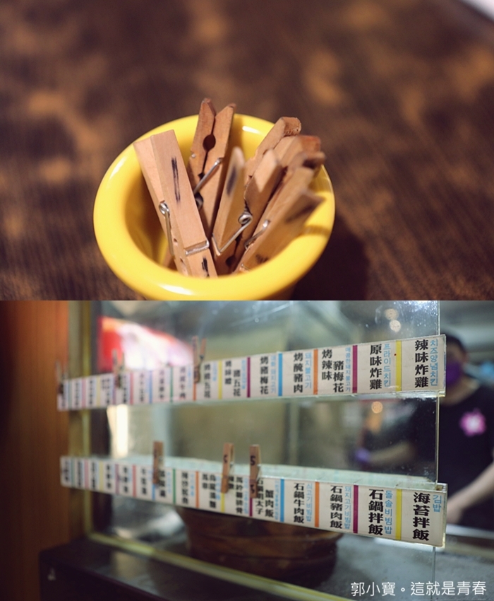 每個桌子上都有夾子,夾子上面都會有標記上自己的桌子號碼,拿到廚房前面的菜單抬上,想吃什麼就夾在菜名上面即可 |
