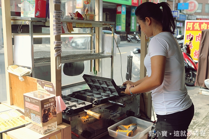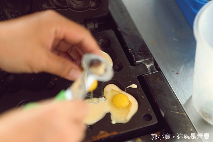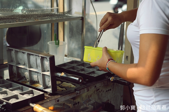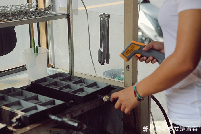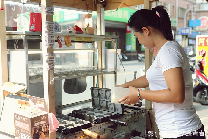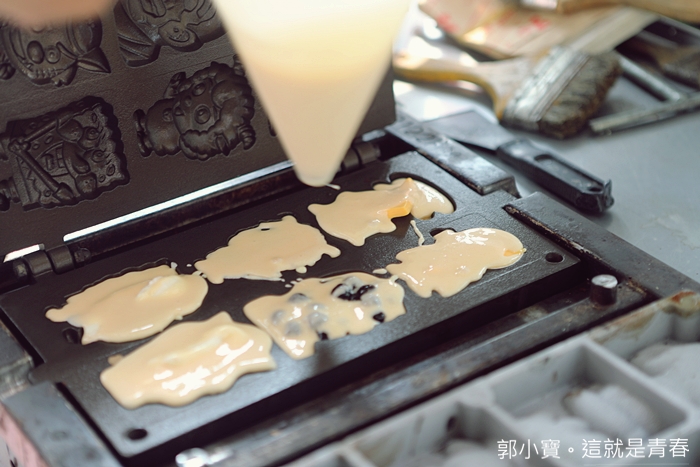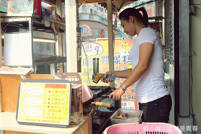 我們家也算是很會買雞蛋糕了家庭了,買過無數攤的雞蛋糕,地一次看到有攤子拿測溫槍再測鐵盤的溫度,一定要等溫度到了才上麵糊,然後除了設定好時間以外,還不時用測溫槍掌握溫度,真的很用心@@ |