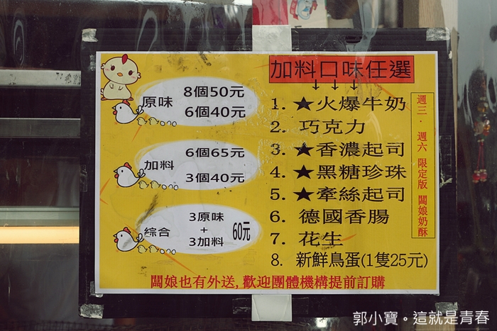 這個我就真的要推薦一下,這次我從北到南吃過那麼多雞蛋糕裡面最厲害的牛奶口味,真的不是那種奶粉味,而是很濃郁的鮮乳味,爆漿口感真的很過癮,但是一口咬下要注意一下,會有點燙口,有點像是其他雞蛋糕攤的克林姆,但是這個火爆牛奶比克林姆好吃太多了。 |