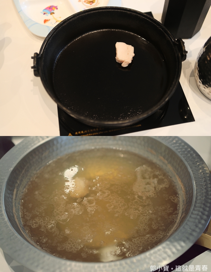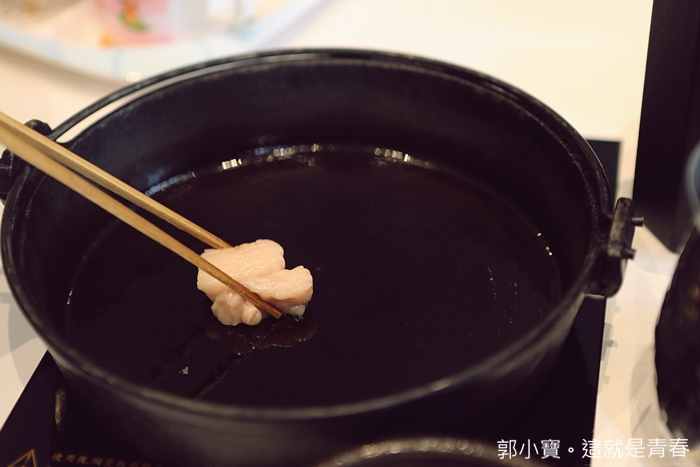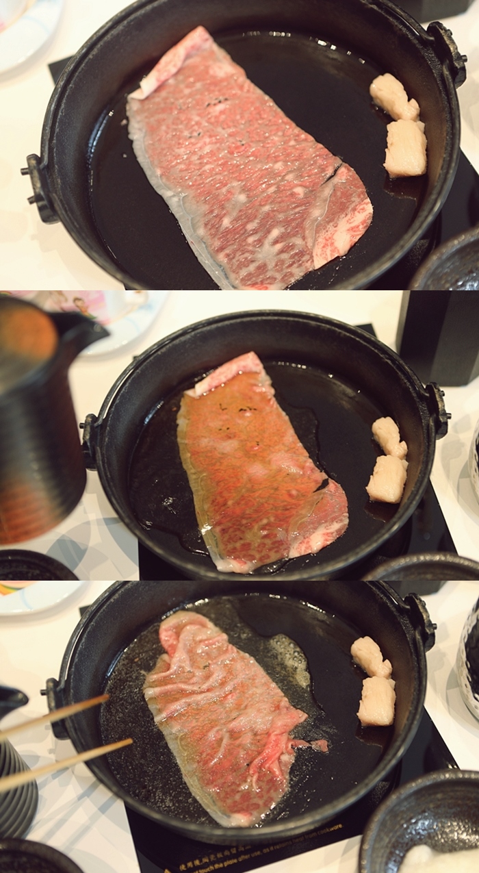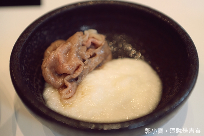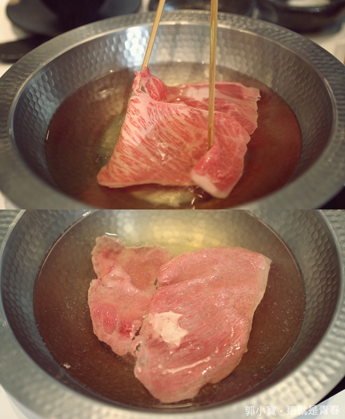湯頭是使用昆布高湯,將牛肉放入鍋內涮一下就可以起鍋了,牛肉也不會一夾就散,放入鍋內一下就變成了粉嫩色了XDDD |