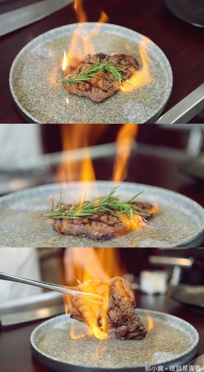 我們還點了一樣華國但馬屋非常有人氣的炙燒牛排,華國的牛排館本身的知名度就很高了,現場廚師會推推車來你的面前直接製作。 |