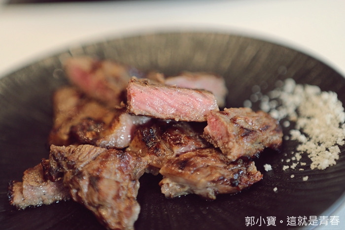 提供的鹽是我很喜歡的松露鹽,松露香氣非常重,牛肉吃起來雖然沒有和牛的豐沛油脂跟鮮甜,但是卻有著美牛獨特的肉汁跟口感還有甜度,也很不賴! |