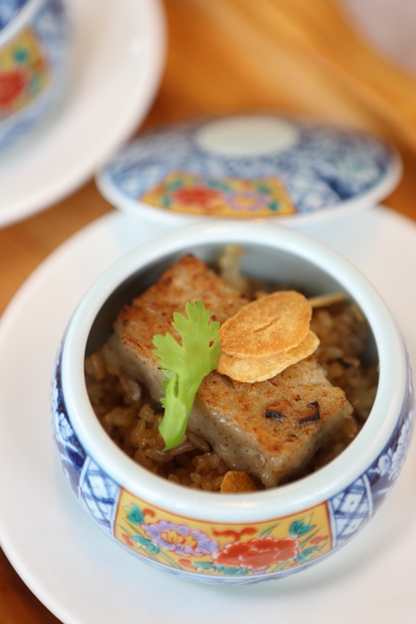 松露蘿蔔糕的蘿蔔味很香醇,搭配炸蒜片吃起來的層次非常豐富,麻油米糕也很好吃,份量不多但是就是要這樣才可以意猶未盡,而且後面還有其他菜,份量真的抓得恰到好處。 |