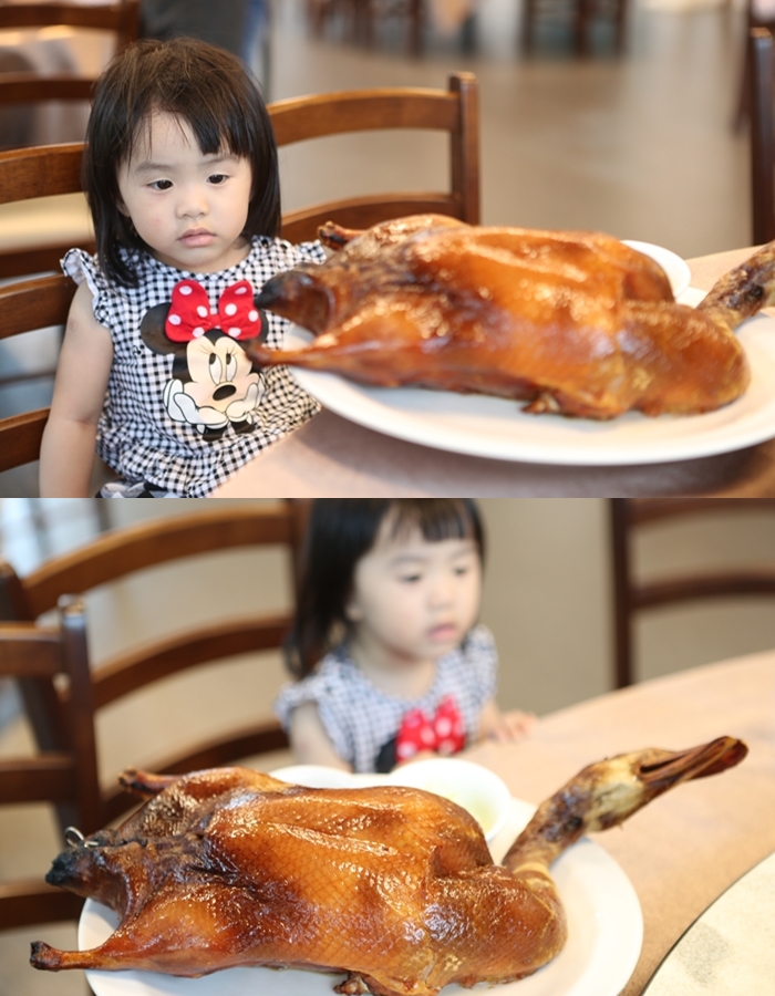 差不多御藏私房其實真的差超多,客人如果人數比較多的話,還可以補差額價800元點上一支櫻桃烤鴨,史上最便宜的櫻桃烤鴨大概就屬於這裡了,800元的價格真的讓人感動到痛哭流涕,老闆真的是佛心來著,這隻櫻桃鴨至少有三四斤重,非常肥嫩,我家嬰皇都看呆了。 |