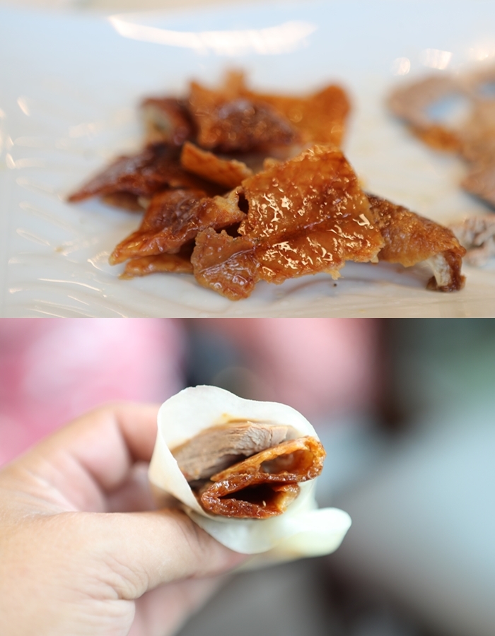 我更推薦夾餅裡面自己在塞進去一片鴨皮,整體的口感更加分,酥脆的鴨皮帶有豐沛的油脂,吃起來真的是色香味俱全,這一隻櫻桃鴨的風味不輸給宜蘭幾家名店,但是價位卻是便宜了一大截啊!! |