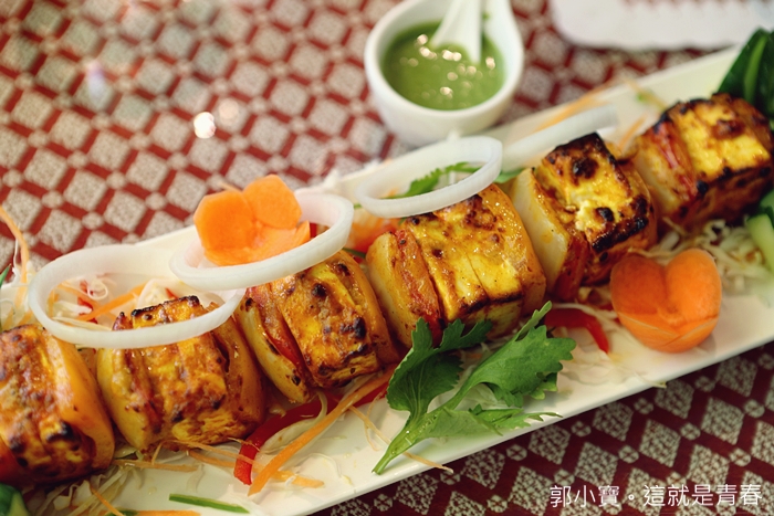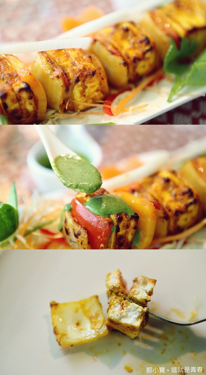 這也是我第一次看到的印度料理,奶酪炭烤真的看起來就很有趣,所以就手殘的點了一份來試試看,實體看起來的賣相很好,淋上搭配的醬料跟單吃味道都不一樣,奶酪吃起來的感覺口感偏紮實,細細咀嚼有淡淡的炭烤香氣跟奶酪的滋味,但是搭配洋蔥整體的豐富度較佳。