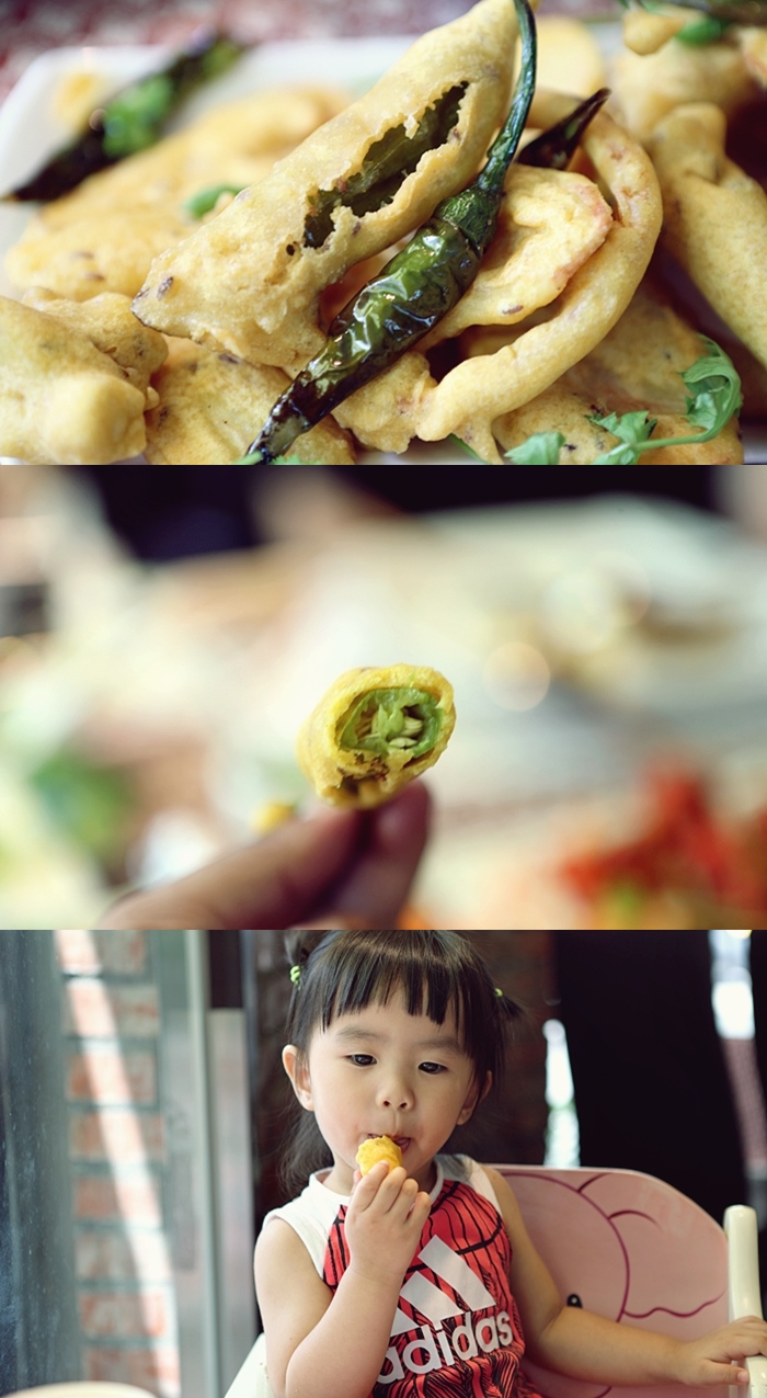 這炸蔬菜倒是讓我滿耳目一新的,外皮有點像是麵包粉的炸皮,咬起來不算酥脆,但是就是有那咀嚼麵包的口感,裡面卻是各式各樣的蔬菜,這個我也滿喜歡的,很適合小朋友,不然我家嬰皇真的不喜歡吃蔬菜,但是當天她倒是吃了滿多。