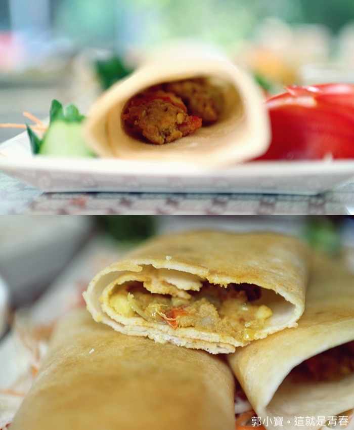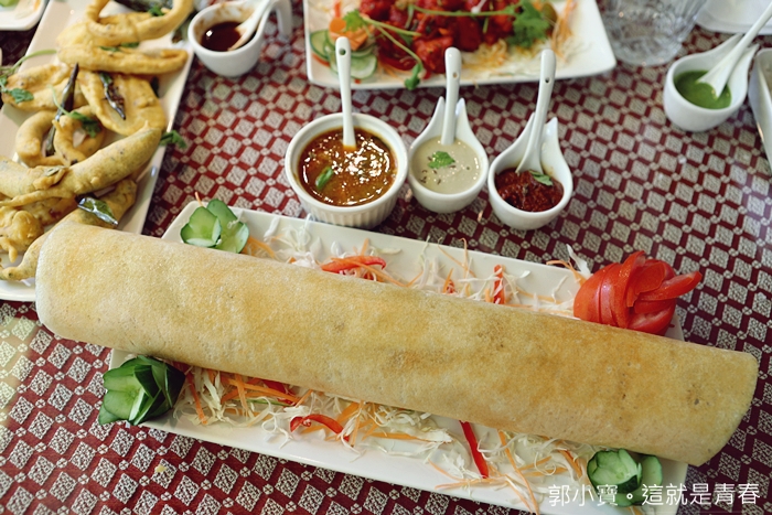瑪莎拉是印度當地非常有名的香料名子,很多街邊小吃都會使用這種香料,算是很經典的香料,這一份馬沙拉豆沙也是很傳統的印度美食,光是搭配的醬料就有三款,分別是黃扁豆咖哩醬、辣椒醬、椰子醬三款。
