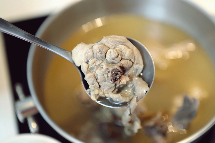 熬出來的湯頭還滿鮮甜的,且酒味不會太濃,煮完後只剩酒香氣,連我很少喝酒的人都覺得湯頭很好喝。 |