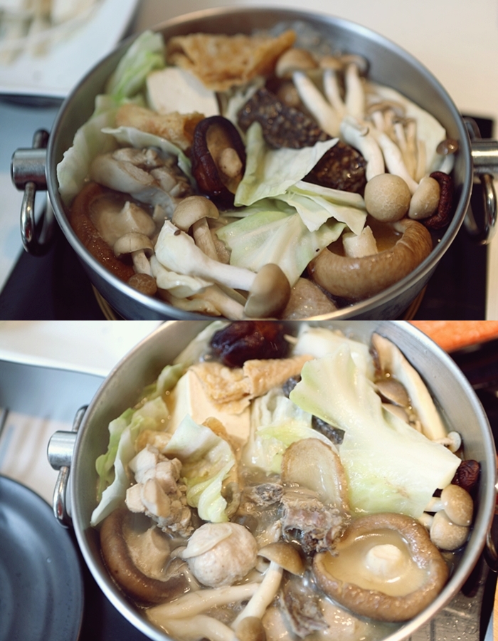 這兩年來很多小火鍋店都陸續推出了麻油燒酒雞的個人鍋,避免有時候全家大小一起吃鍋的時候,很多老人家吃不了麻辣鍋又覺得昆布鍋太淡的話,那麻油酒糟土雞鍋就很適合,一上桌那濃郁的麻油酒糟香氣很誘人。 |