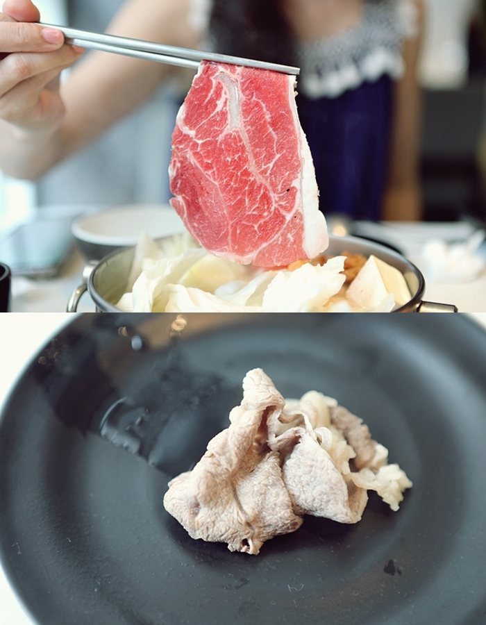 我個人涮牛肉都喜歡5分熟左右,太妃則是喜歡全熟,每個人吃牛肉的熟度喜愛不一,可以自行斟酌,也可以聽工作人員的介紹來涮出最適合每個部位的熟度。 |