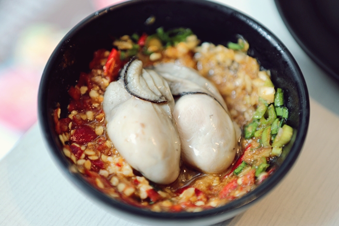 生蚵的尺寸頗大,稍微涮一下起鍋後還是很大顆,用的品質非常好,每一顆都比一個十元硬幣還要大,而且數量也滿多的。 |