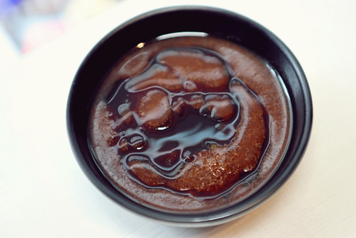 店家會給素食鍋的消費者準備特製的素食醬,是用素沙茶跟素蠔油等調配而成,吃起來我覺得味道滿重的,有點香椿的味道,我個人還滿喜歡的。 |